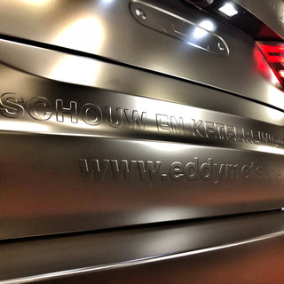 Cette nouvelle BMW X5 était à l'origine également en noir mais le client voulait un noir plus intense et plus foncé. Et Il voulait aussi le nom de son entreprise (Eddy Mets) sur le wrap. Il a donc opté pour un carwrap Black Satin. Le wrap assure que votre voiture a un look plus exclusif, mais en plus ça protège la carrosserie d'origine.
