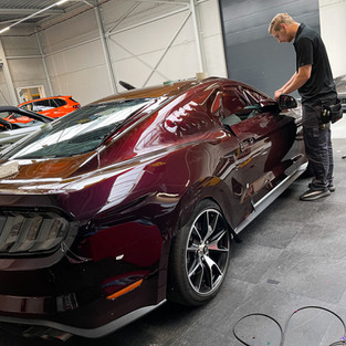 Deze Ford mustang hebben we voorzien van een PWF black opalus FUZED WRAP. Een Fuzed wrap is waarbij we een kleur folie fuseren met Xpel lakbeschermingsfilm. Door deze fusie heeft deze kleurfolie alle voordelen van een lakbescherming en is de wrap nu 300 micron dik en is de originele lak optimaal beschermd tegen steenslag en krassen.