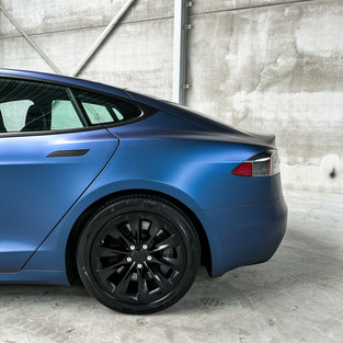 Tesla Model S with a Matt Trenton Blue wrap from Platinum Wrapping Films